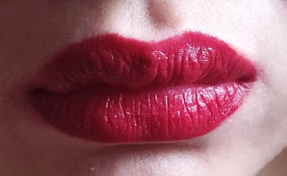 This lipstick is a great warm red color that pulls towards the deeper berry shades a tiny bit. It isn't the deepest, darkest red shade, but it is a great sort off transition color if you're not sure if deep reds would suit you. (In my opinion, deep reds suit everyone)